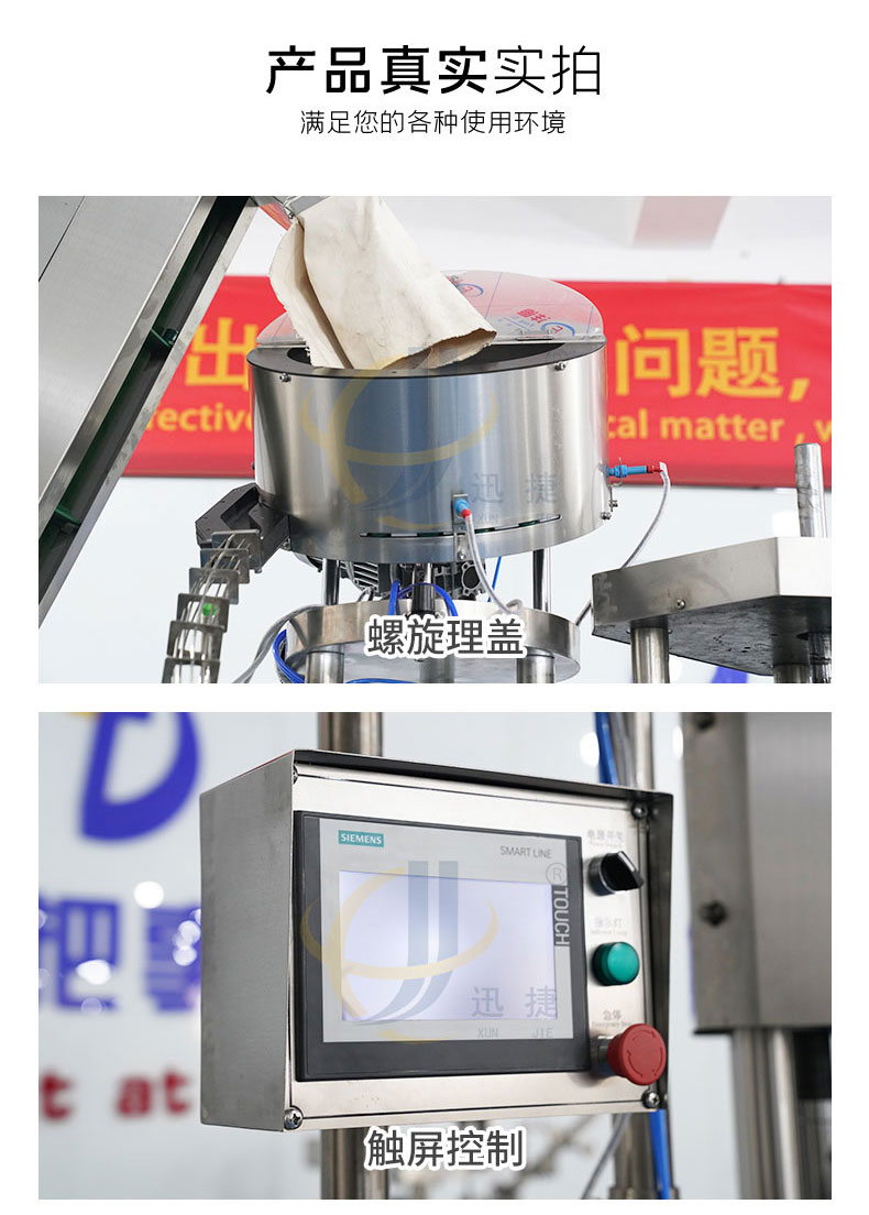 全自動四頭金屬鎖蓋機(jī)供鋁蓋酒瓶瓶封蓋用,整體采用304不銹鋼制作,運(yùn)行穩(wěn)定可靠。適用于50-100ml各類圓瓶、方瓶等瓶型旋蓋。