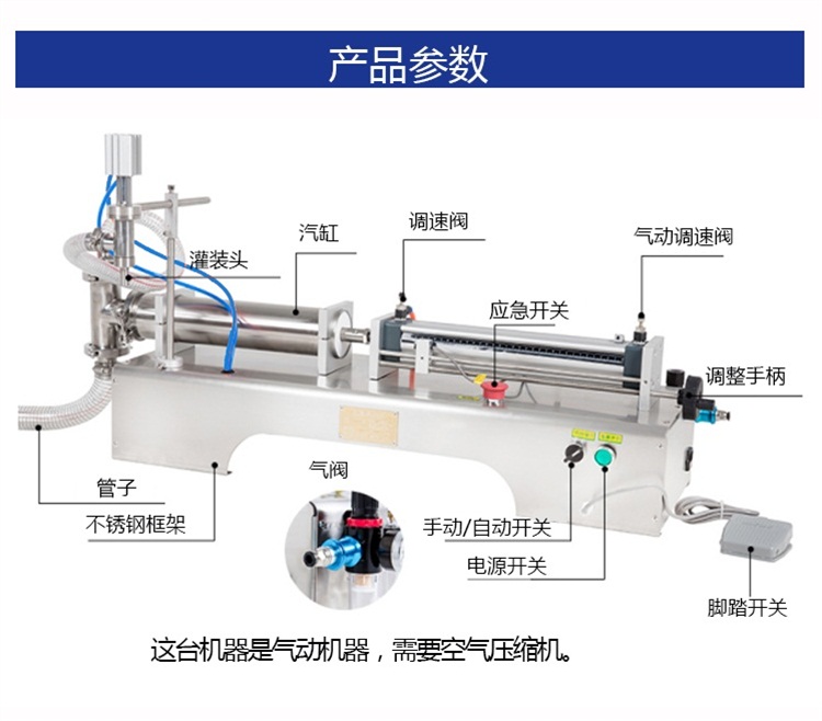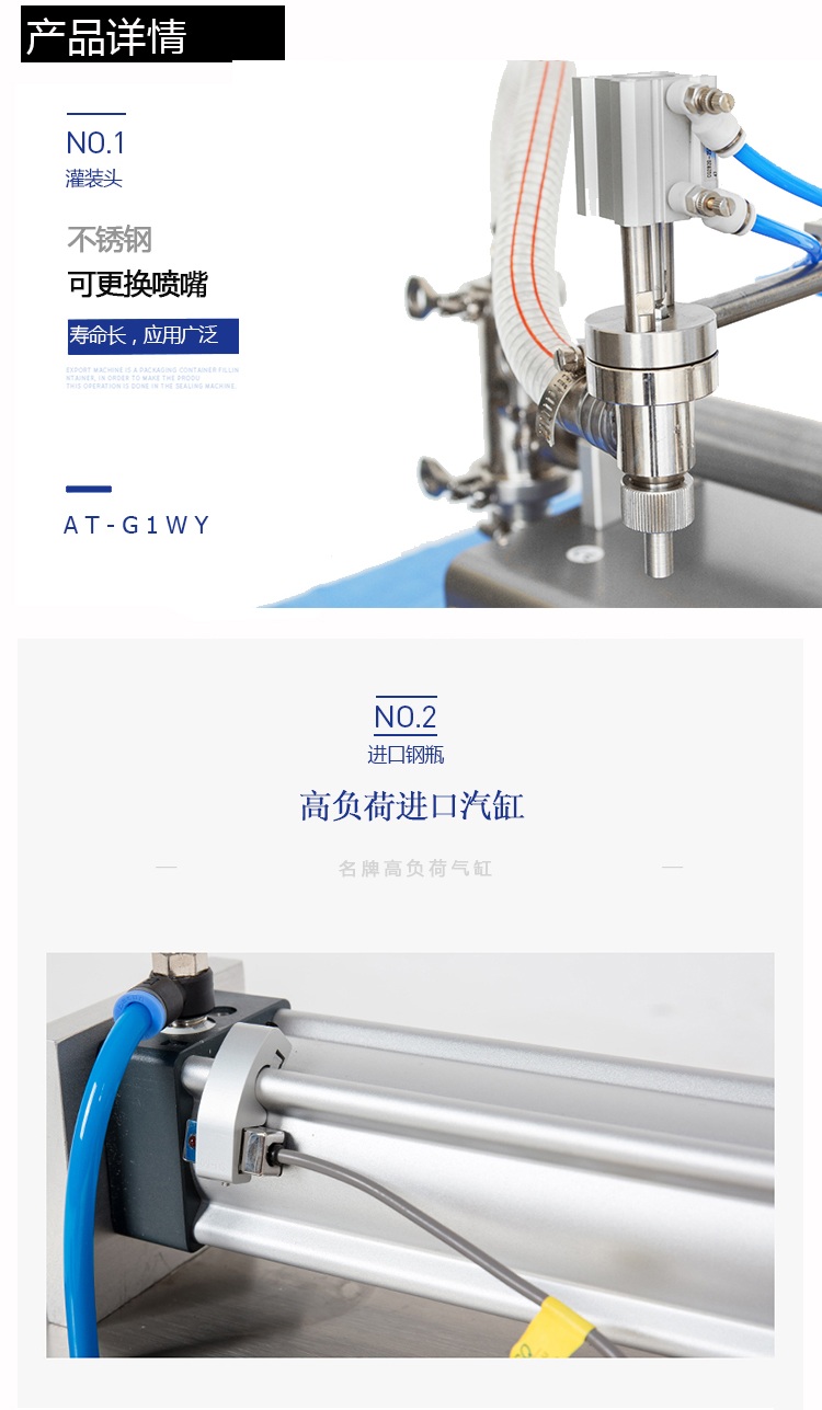 小型半自動單頭液體灌裝機氣缸細節(jié)展示