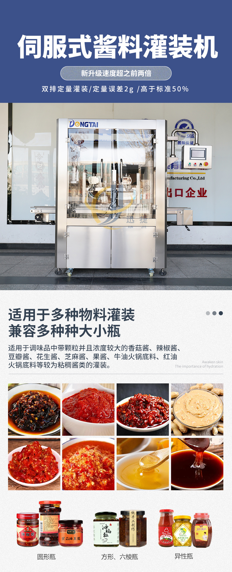 全自動(dòng)醬料灌裝機(jī)在辣椒醬生產(chǎn)過(guò)程中具有諸多優(yōu)勢(shì):